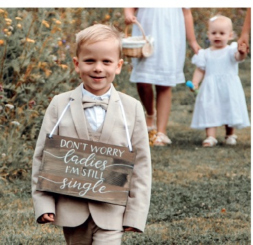 Schon am Eingang wies ein großes Schild Kinder und Eltern auf die geplanten Aktionen der Kinderbetreuung hin. Es gab Kreativangebote, eine Kinderolympiade im Außenbereich sowie gemütliche Ruhebereiche für alle, die eine Pause vom Trubel brauchten. Zu späterer Stunde wurden die kleinsten Gäste in einem separaten Zimmer im Brautappartement schlafen gelegt – so musste kein Elternteil vorzeitig nach Hause, weil der